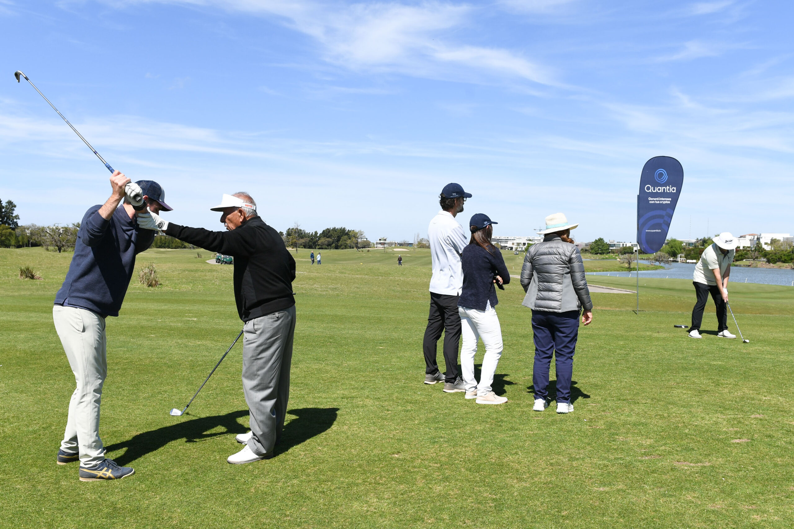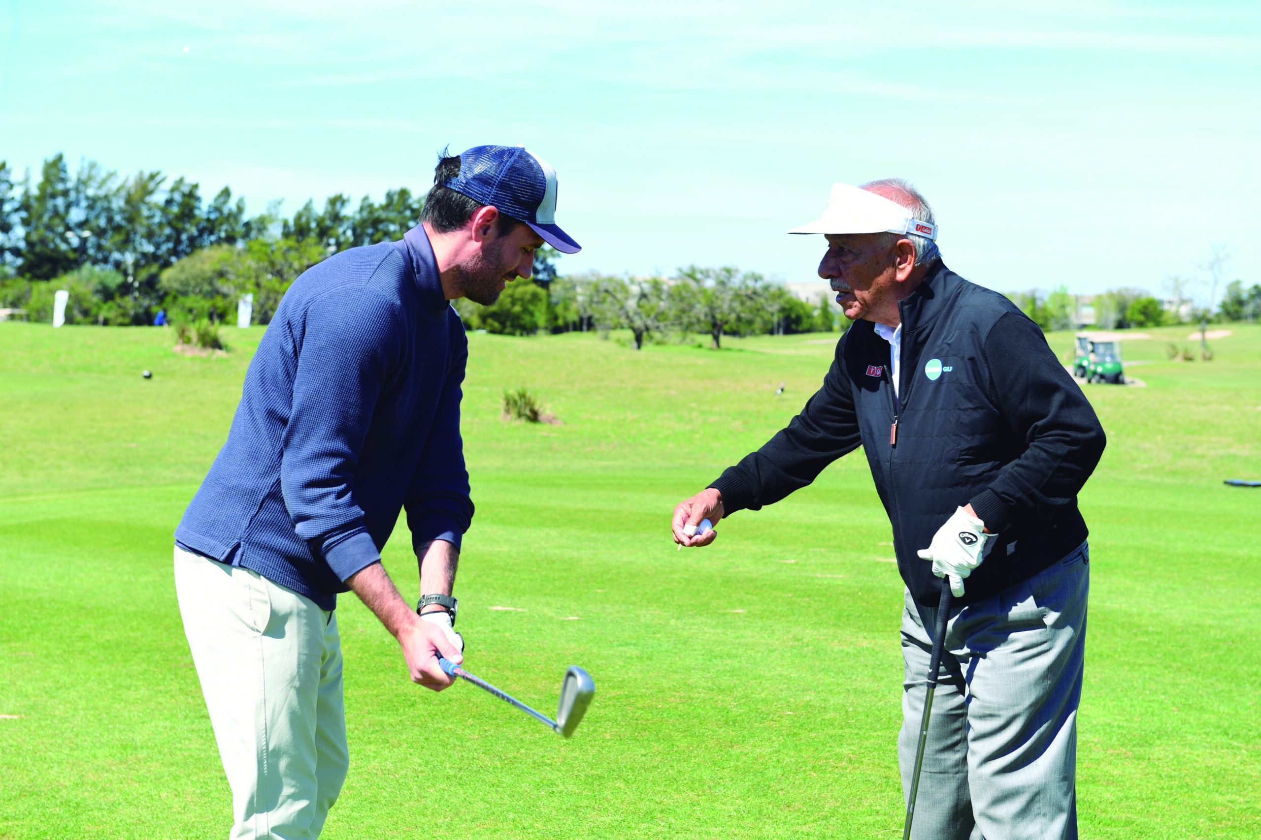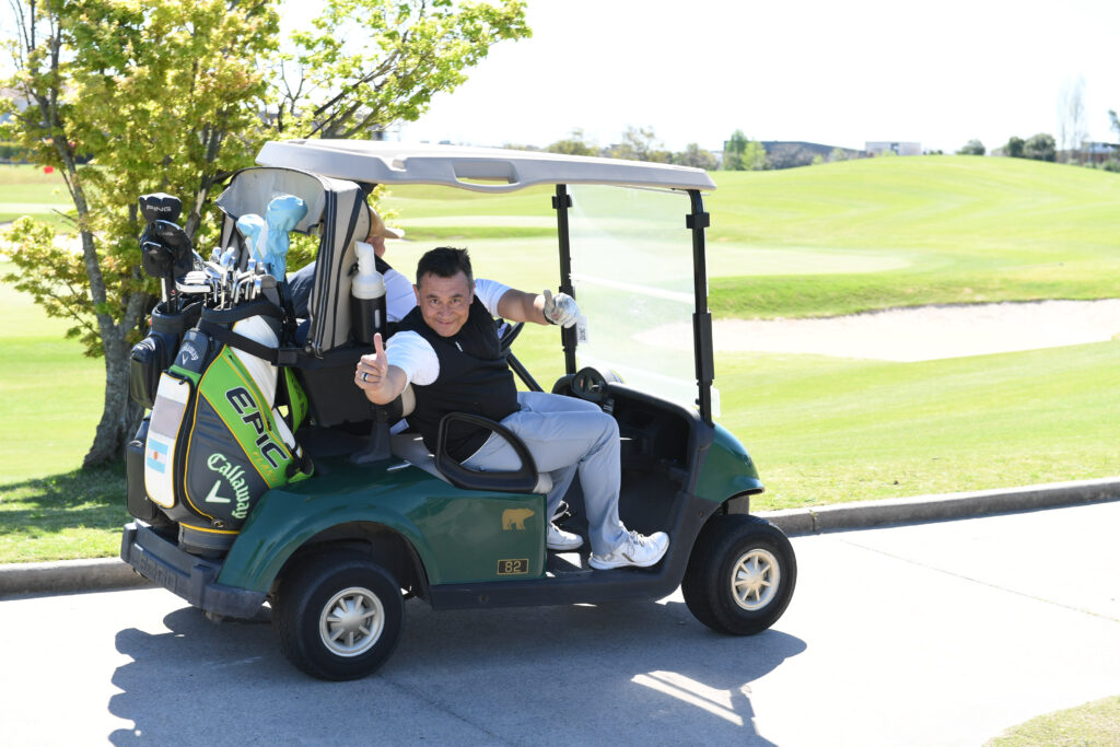 Al llegar, y tras calentar en el driving range, los jugadores tuvieron el privilegio de participar en una clínica especial en el chipping green a cargo de Vicente “Chino” Fernández, una verdadera leyenda del golf argentino. Su trayectoria, marcada por 94 victorias alrededor del mundo, y su reconocida humildad y compromiso solidario, lo convierten en un referente indiscutido del deporte.