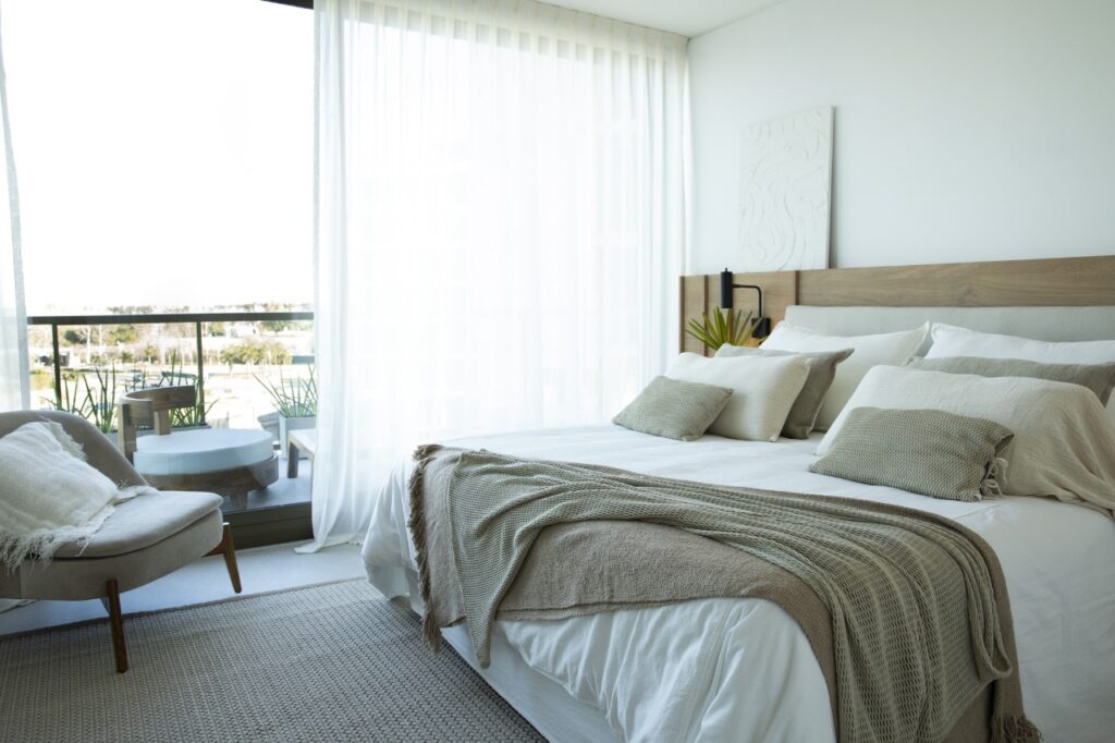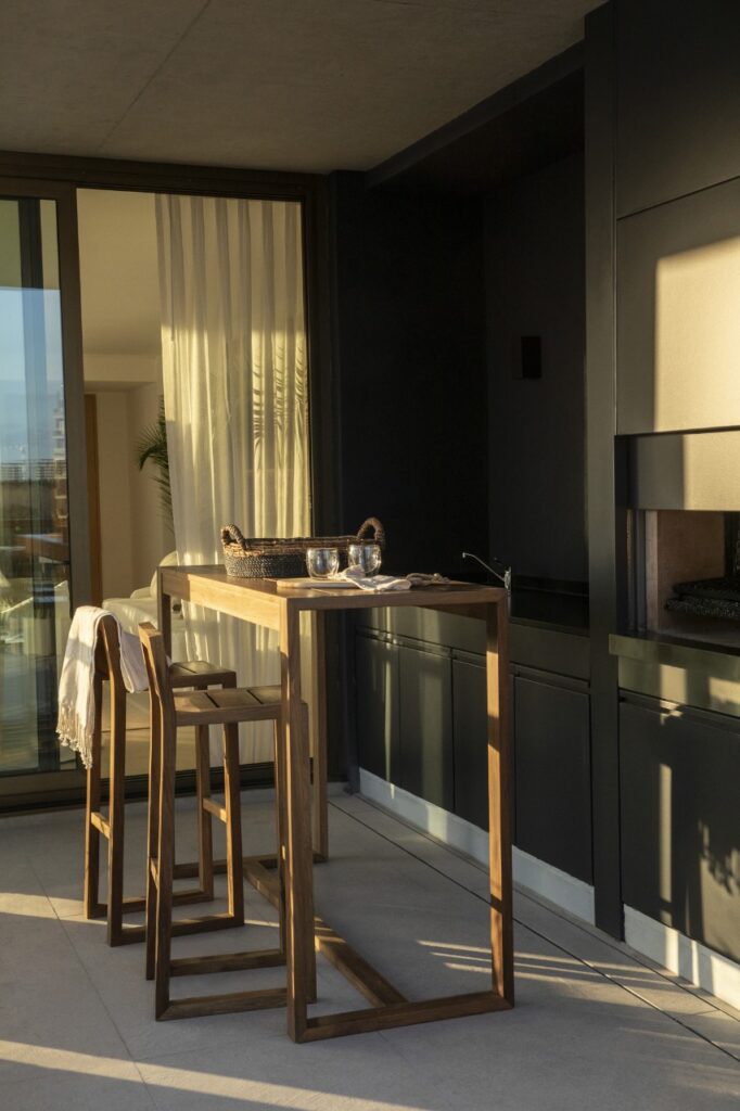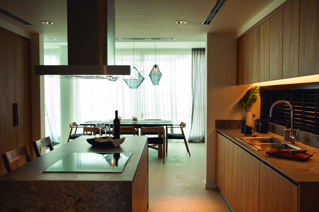 Cada detalle en el diseño ha sido pensado para maximizar el confort y la conexión con el entorno. Todas las unidades cuentan con doble orientación, parrilla (con la adición de una segunda en el SUM para los pent-houses), dos cocheras cubiertas independientes y baulera. Los interiores, por su parte, reflejan el carácter premium del proyecto, incorporando terminaciones y materiales de origen europeo, carpinterías de alta prestación desarrolladas a medida. La cocina combina diseño contemporáneo y materiales de alta calidad: con mesadas Ascale Ceppo di Gre. Muebles en melamina simil madera Hickory con herrajes