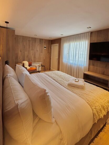 El diseño de Montano Suites dialoga directamente con el exterior. Sus categorías de habitaciones —Deluxe Mountain View, Premium Suite y Signature Mountain View— están diseñadas para la contemplación. Los grandes ventanales funcionan como marcos vivos de las montañas, mientras que la madera aporta la calidez necesaria para que el huésped no solo vea la Patagonia, sino que la sienta.